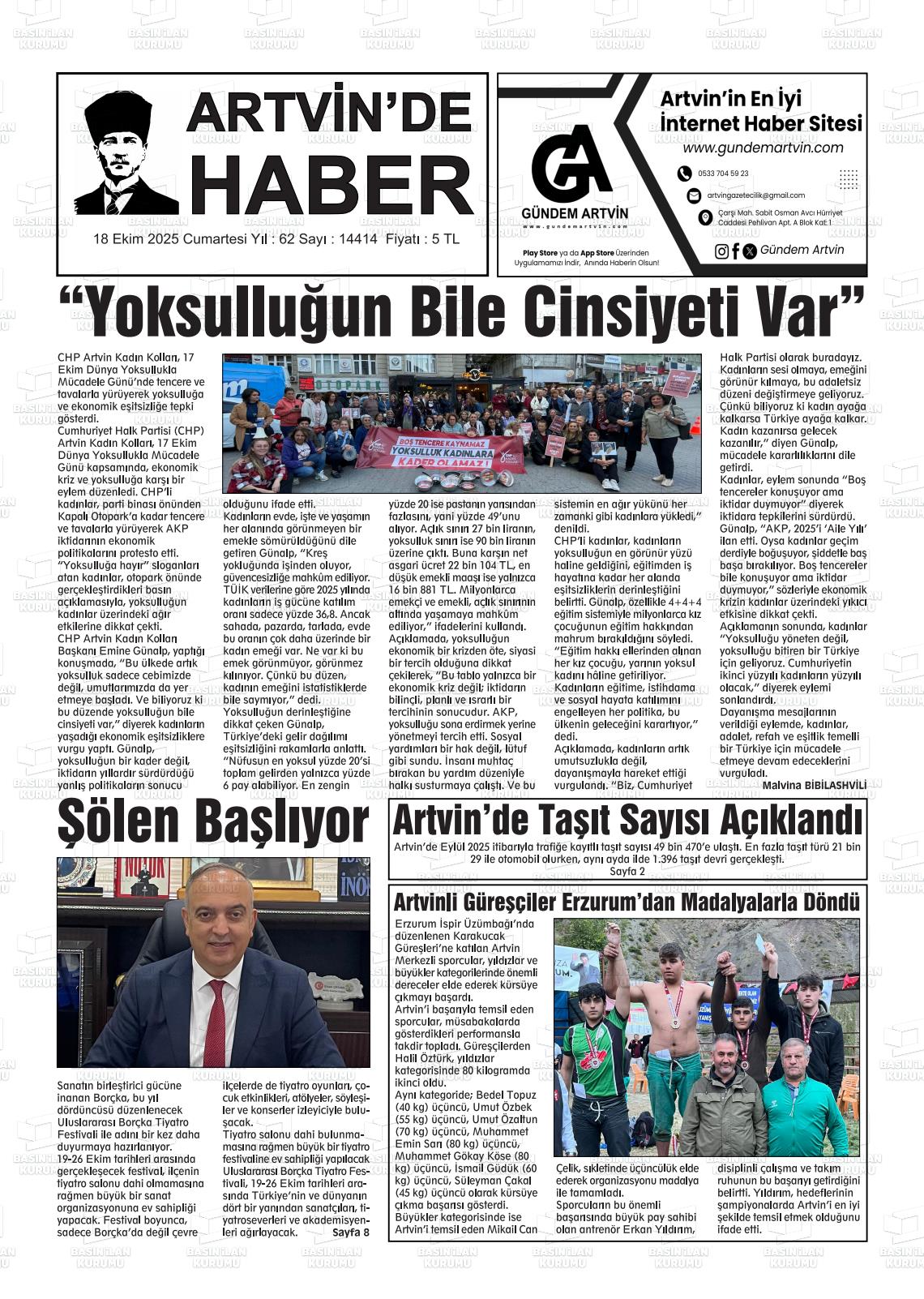 18 Ekim 2025, Cumartesi Günü Manşeti