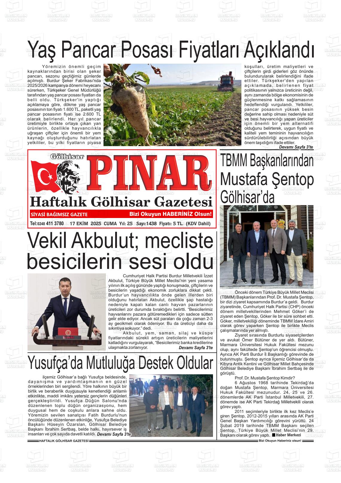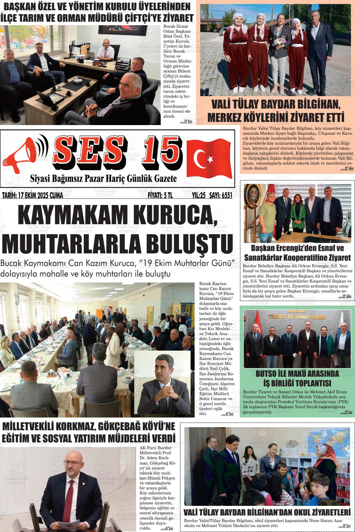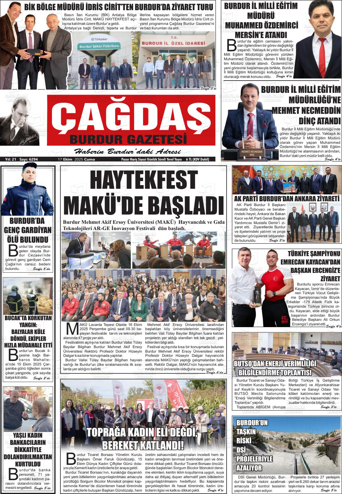 Burdur Yerel Gazeteleri 17 Ekim 2025, Cuma Günü Manşeti