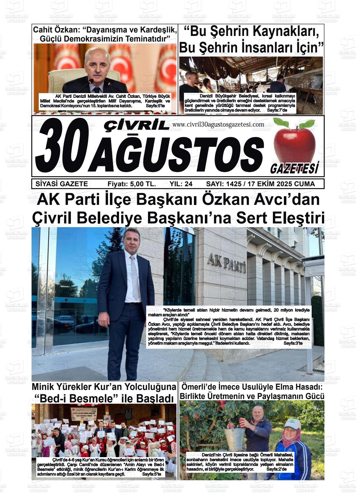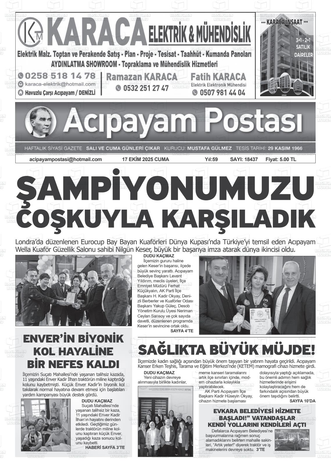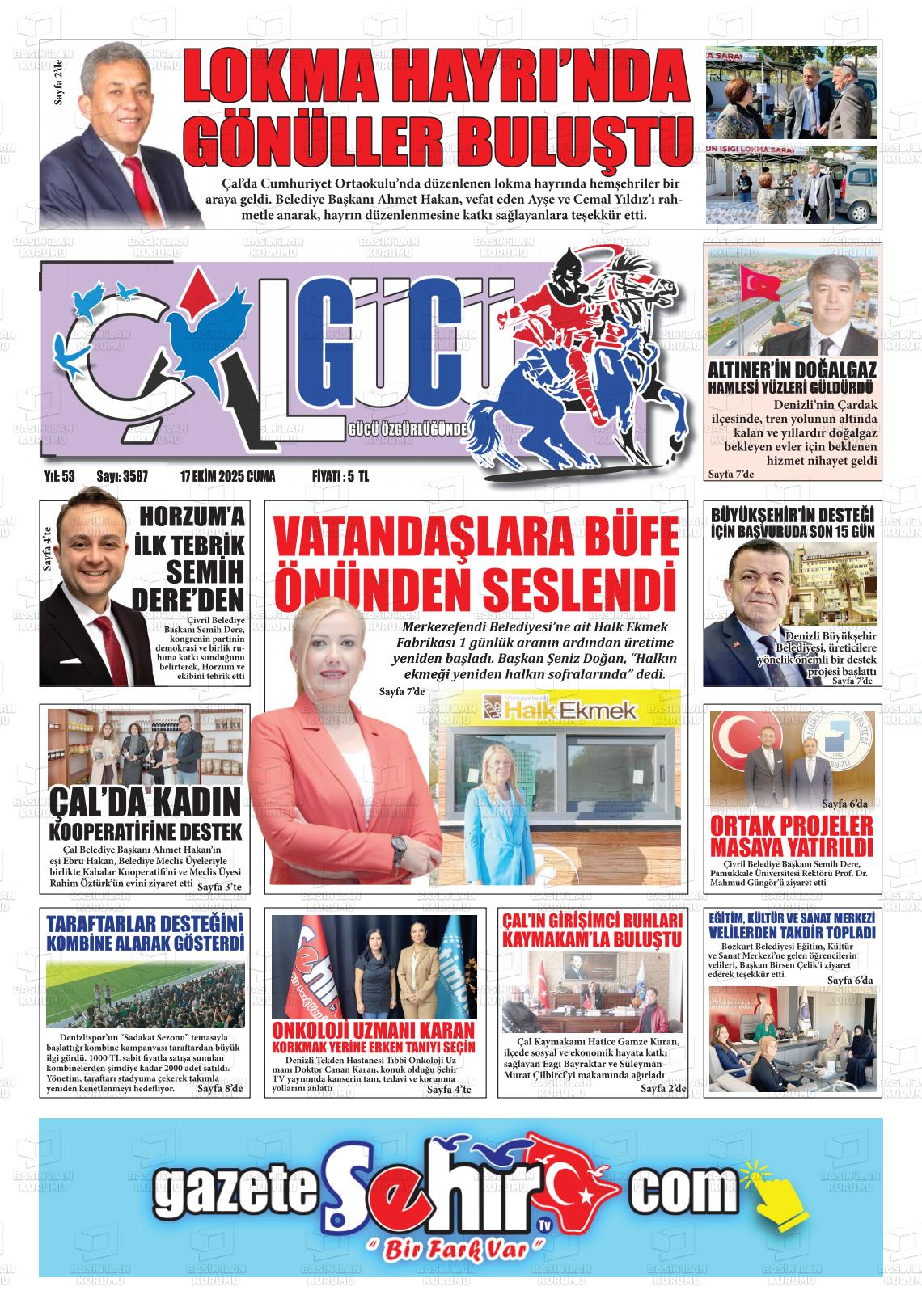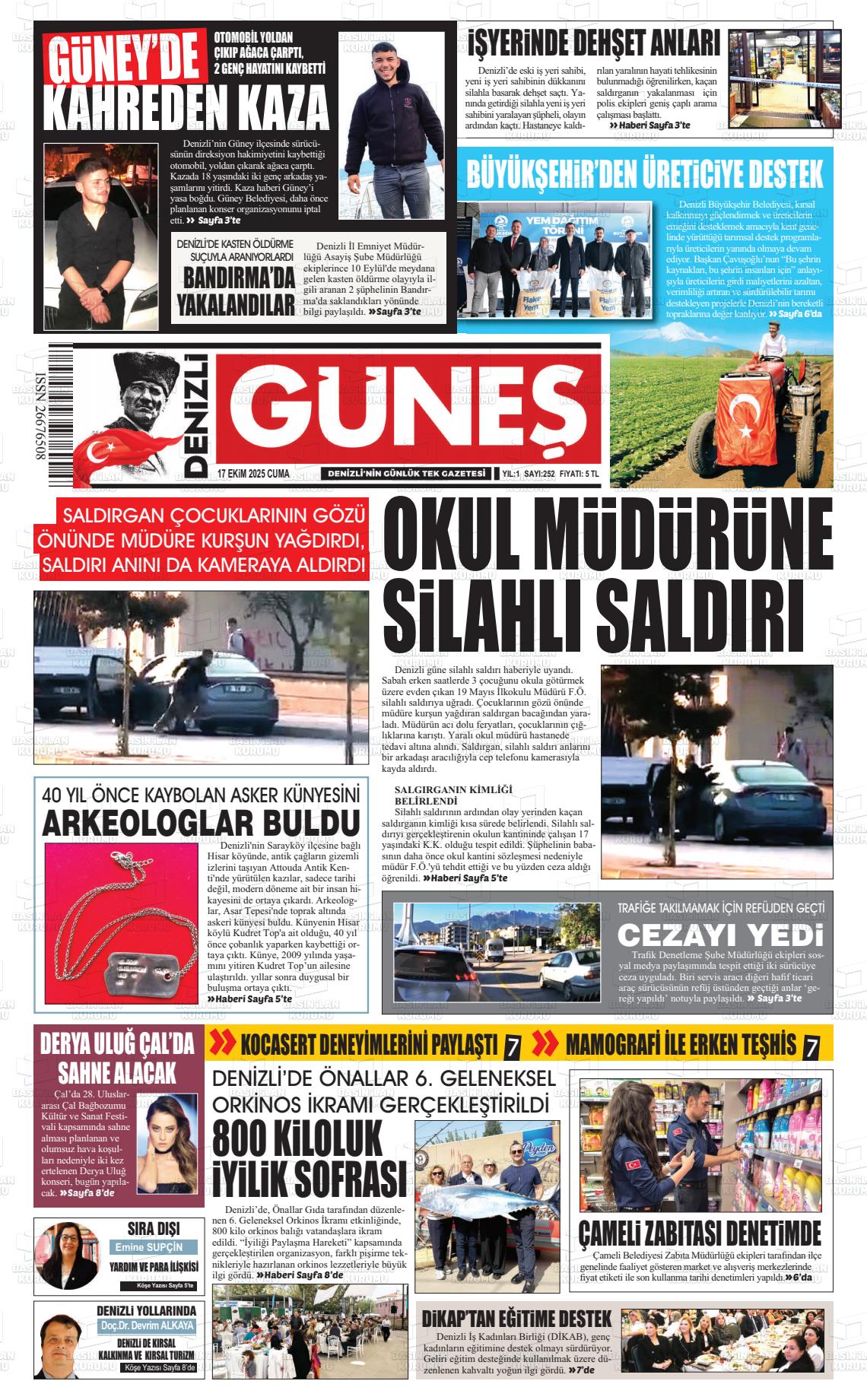 Denİzlİ Yerel Gazeteleri 17 Ekim 2025, Cuma Günü Manşeti