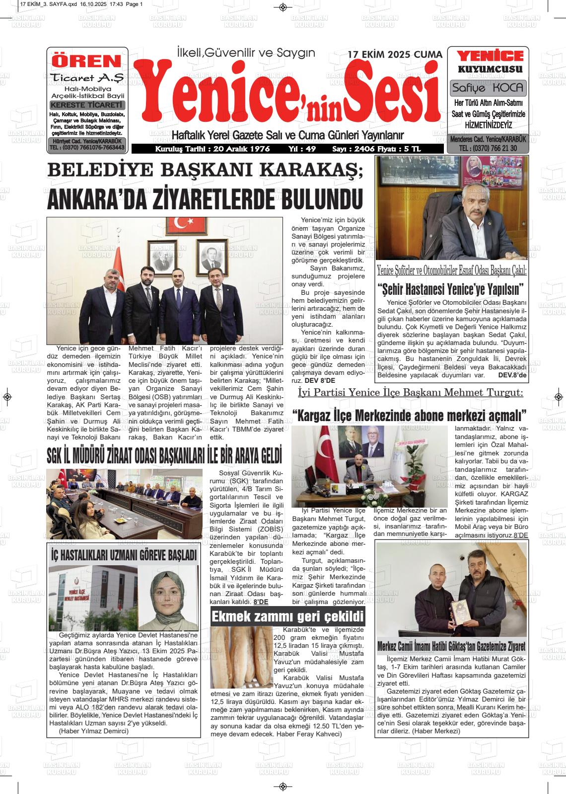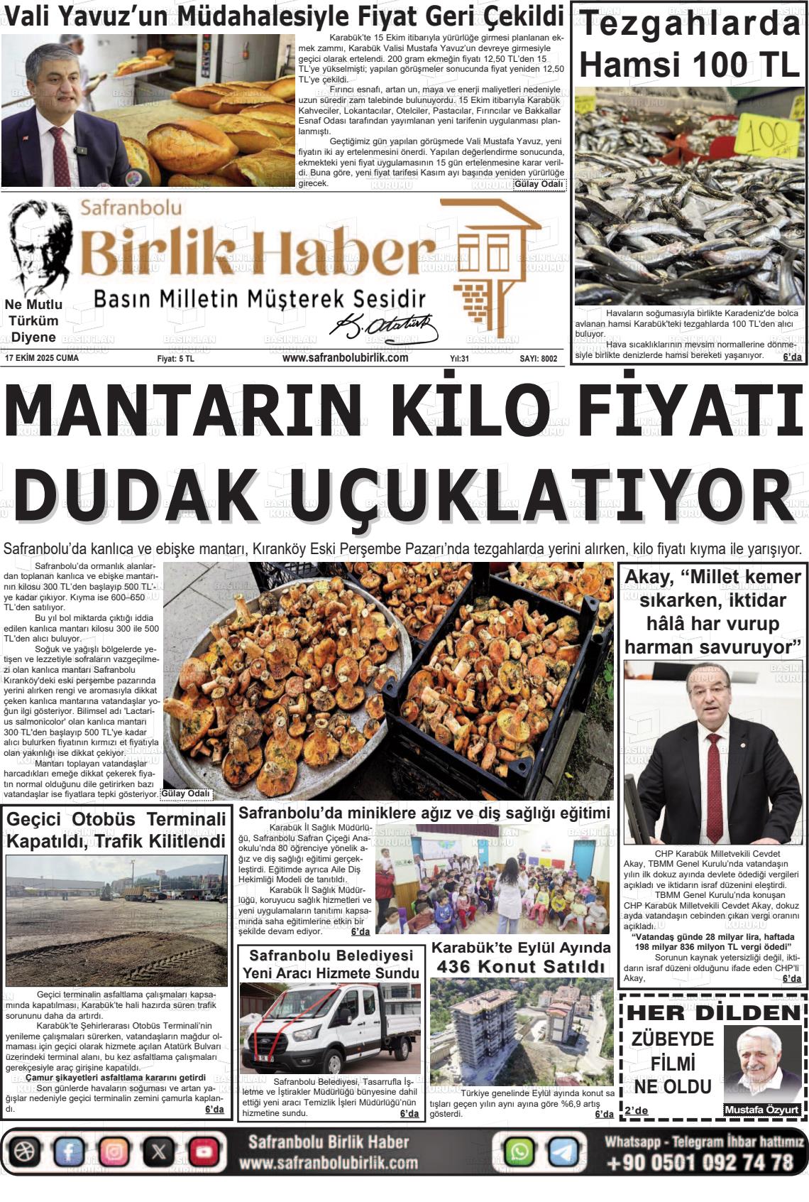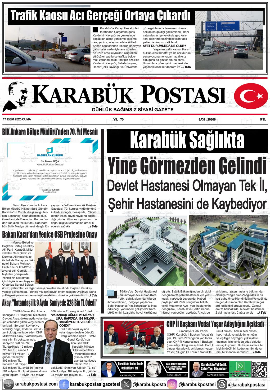Karabük Yerel Gazeteleri 18 Ekim 2025, Cumartesi Günü Manşeti