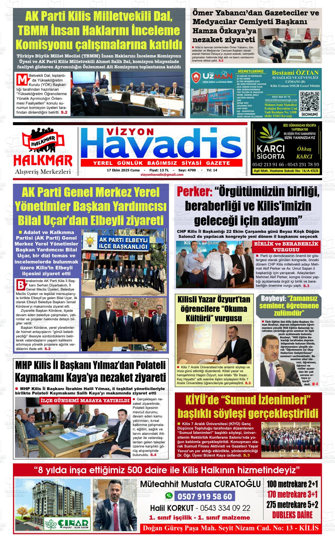 18 Ekim 2025, Cumartesi Günü Manşeti
