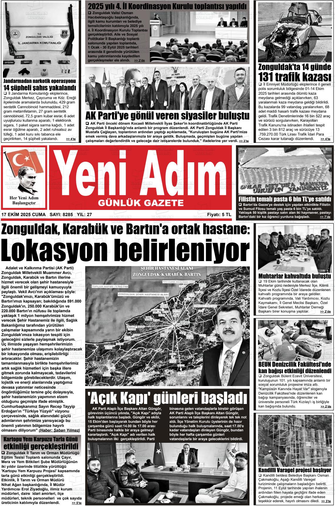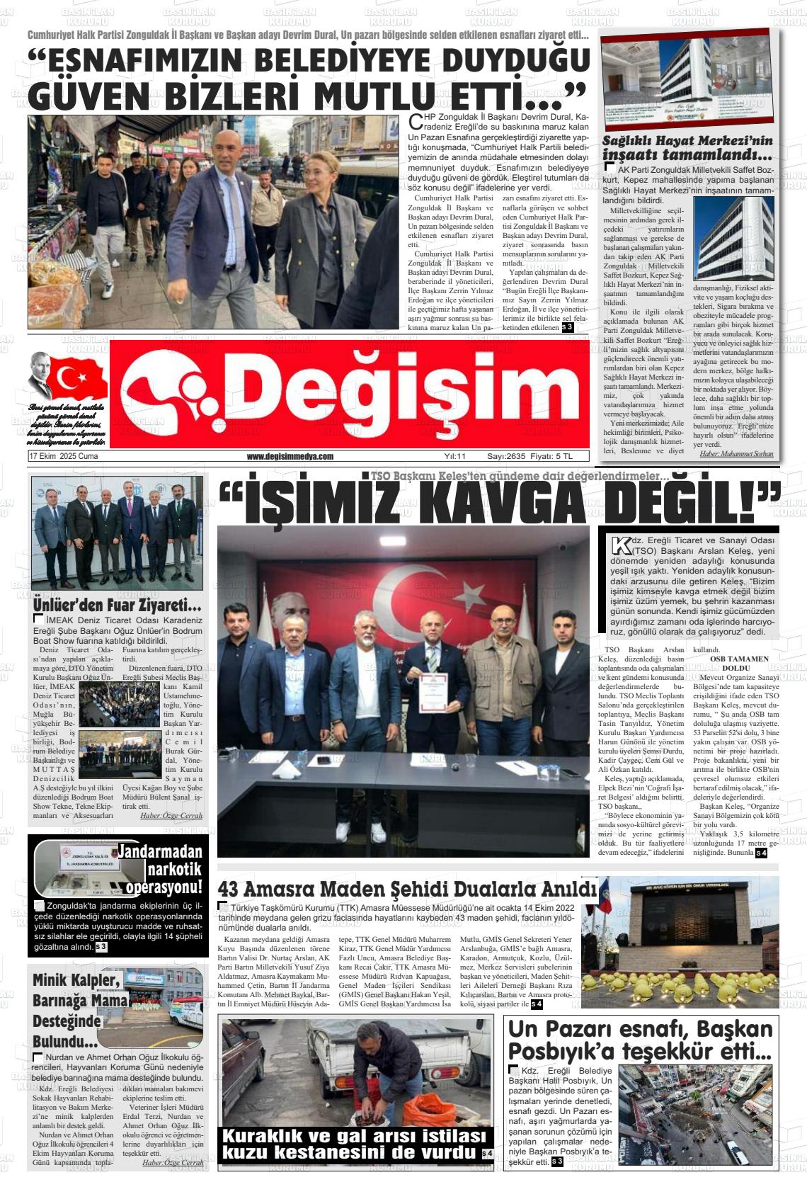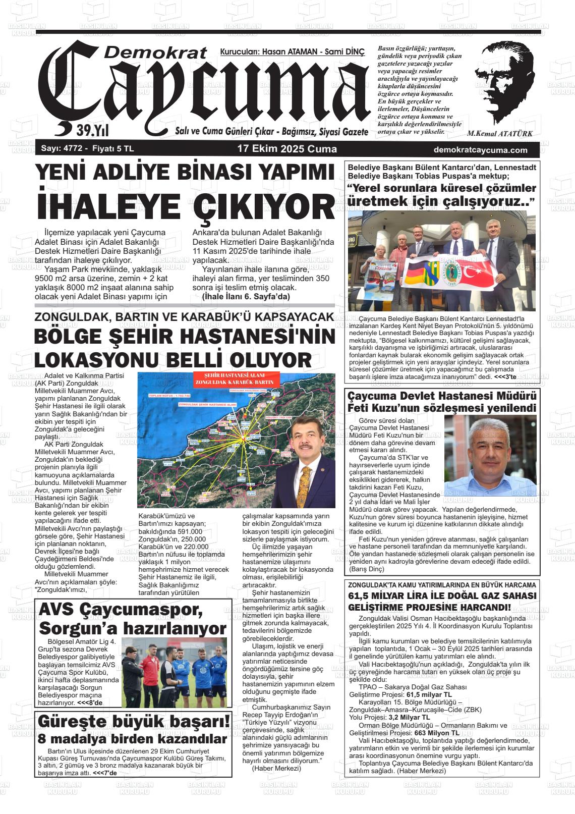 Zonguldak Yerel Gazeteleri 17 Ekim 2025, Cuma Günü Manşeti