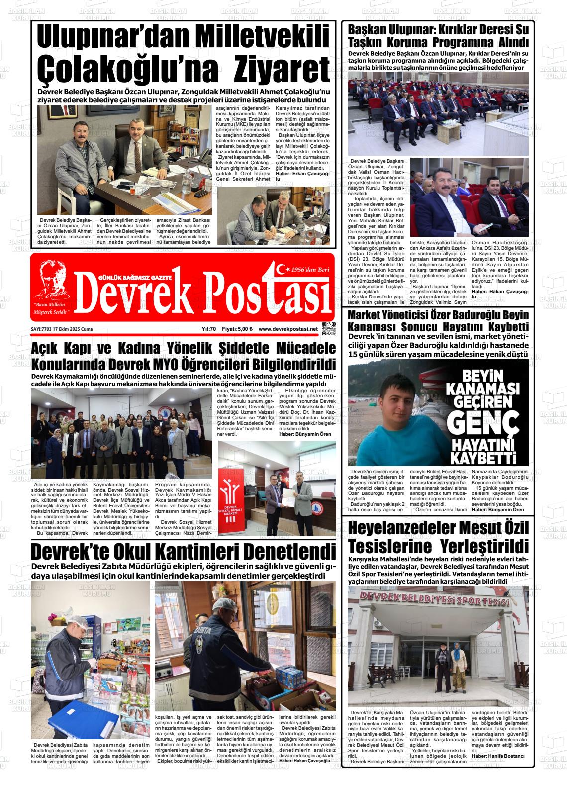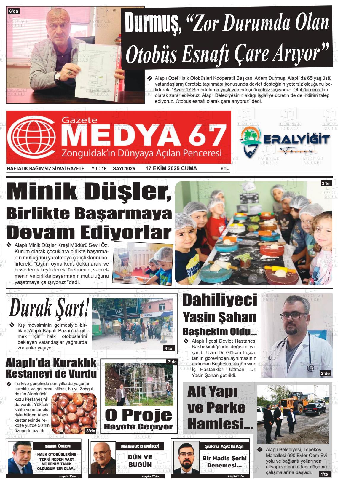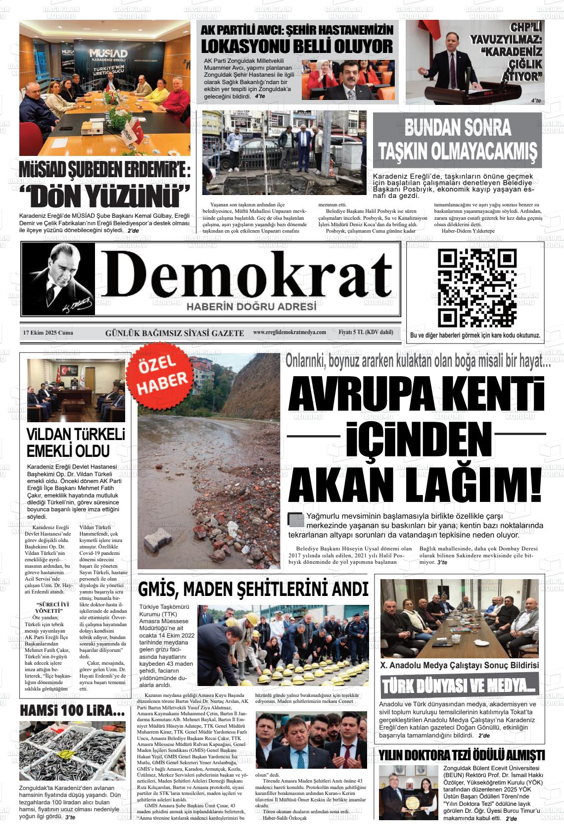 Zonguldak Yerel Gazeteleri 17 Ekim 2025, Cuma Günü Manşeti